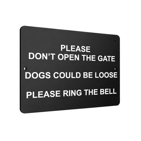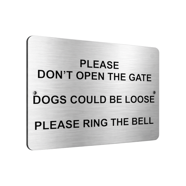 B013 PLEASE DON'T OPEN THE GATE DOGS LOOSE Aluminium Composite Sign Plaque