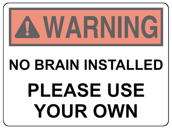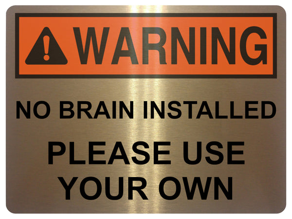 2429 WARNING No Brain Installed Use Your Own Funny Metal Aluminium Plaque Sign