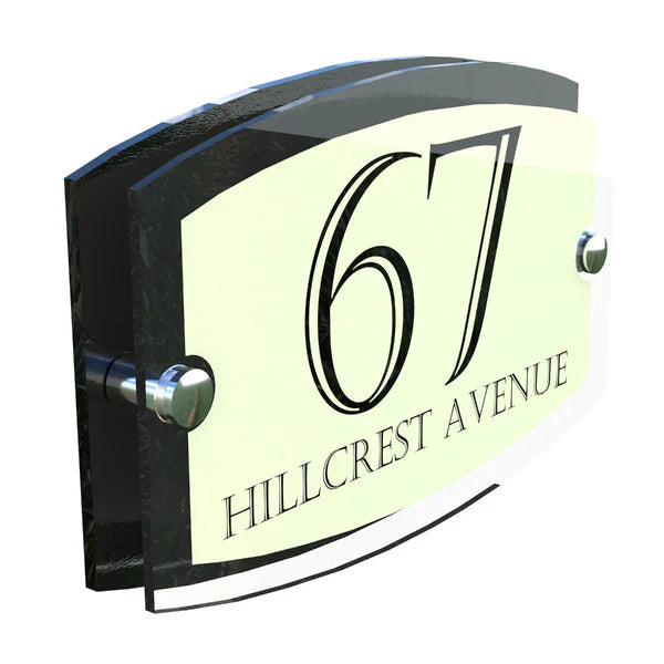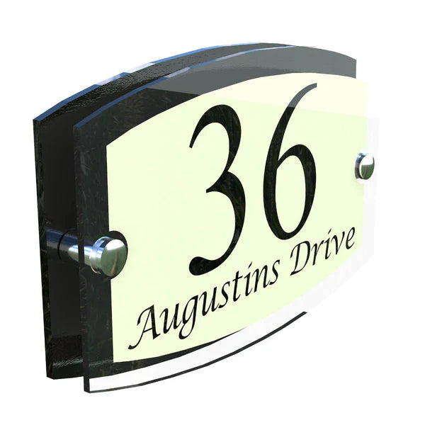 We use 100% Genuine Perspex  Composite Aluminium. The finished item is a beautiful laser cut, flame edge polished and UV printed floating sign with stainless steel fittings. A perfect contemporary sign suitable for any property.